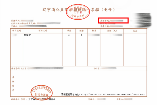 当您向辽宁大学哲学院捐赠后,我们会为您提供捐赠票据,票据右上角的票据号码为申报必填项。